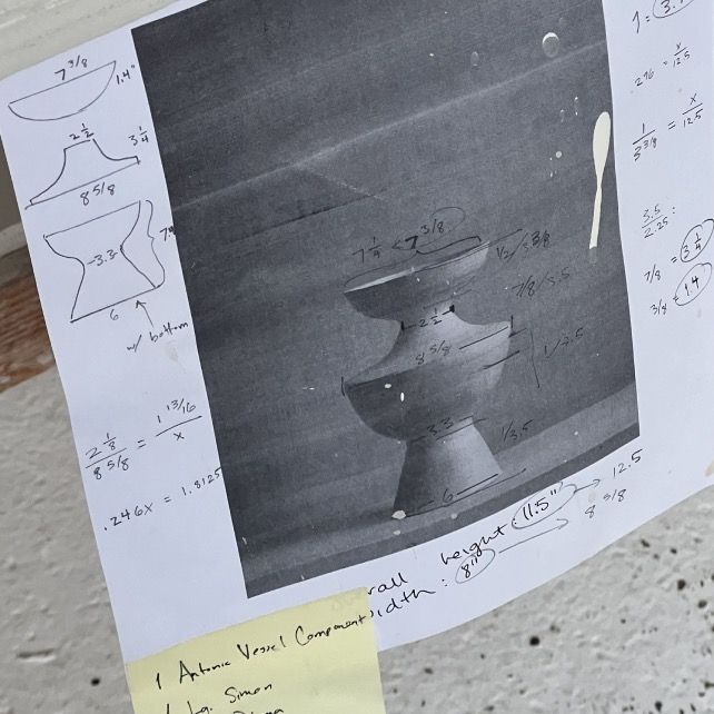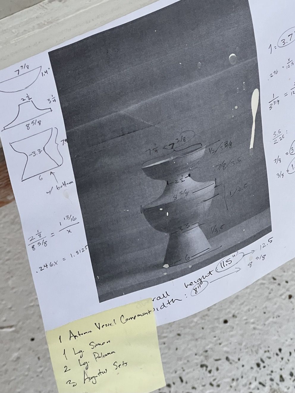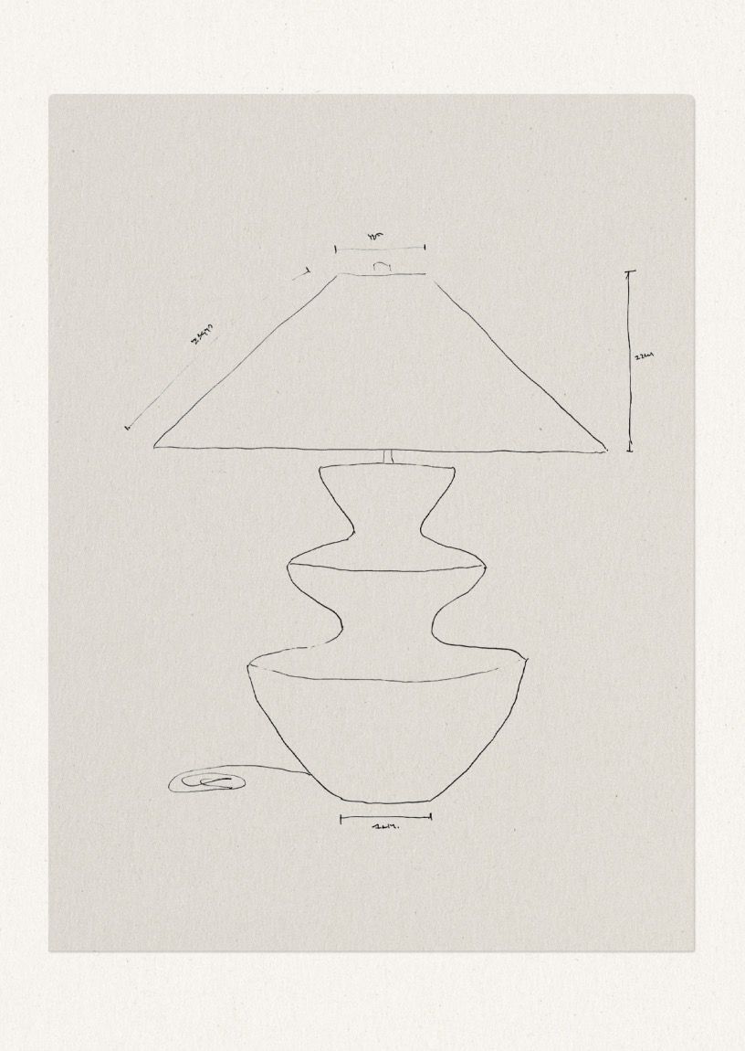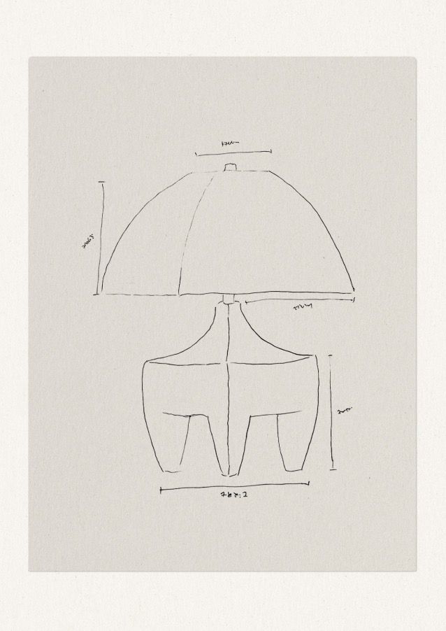 Early sketches of the Astor Lamp that features a glazed ceramic base and vellum lamp shade